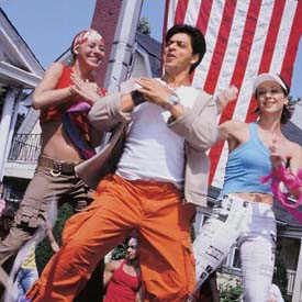 In the beginning of the film, we are introduced to Naina Kapur (Preity Zinta), a young immigrant from India who lives in the Southeast Asian section of Jackson Heights, Queens (we learn that by observing an envelope that she holds during the first few minutes of the film.) Naina is a girl who has lost the ability to smile due to the various troubles her family has experienced. Her father took his own life, and the family business - a small café - isn't doing well. Her home life is one of disharmony, due to constant squabbles between her mother, Jennifer (Jaya Bhaduri) and her grandmother (Jennifer's mother-in-law), who bicker about everything - the food they eat (the older lady prefers Indian food, while everyone else follows a Westernized diet), their religions (Hindu versus Catholic) and mainly the fact that Jennifer has adopted a little girl, who grandma refuses to accept as a true member of the family. Enter Aman Mathur (Shahrukh Khan, the star of the Academy Award-nominated Devdas a few years back), who notices the girl's unhappiness and does everything to bring her smile back (the Hindi version of Roy Orbison's "Pretty Woman" pretty much sets the tone for a good half of the film). He quickly befriends everyone in the family, including Naina's best friend Rohit (Saif Ali Khan, a wealthy but shy Indian Manhattanite who is attracted to his friend, but seems afraid to ruin it in the best When Harry Met Sally fashion. As Aman has Naina recover her sense of humor, he helps her mother recover their business by turning their American café into an Indian restaurant, which seems to make more sense in their neighborhood. He also tries to match Rohit and Naina, but his plan backfires when the girl falls in love with him.