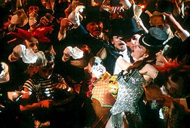 A real artist, as with Renoir’s class-consciousness, would have recognized that the individuals in these minority cultures represent the modern equivalent of the Can-Can dancers and lower-class models of the Impressionists. Critics should know better (and audiences deserve better). Accounting for the conscious pleasure critics find in the film reveals no less disturbing impulses. Consider the instructive sequence in which McGregor and the Bohemians rehearse (and write) the Switzerland-set rough version of the musical they will eventually perform at the Moulin Rouge. The artists struggle to complete the song lyric: “The hills are alive with…: In full “Tomorrow Belongs to Me” glory, McGregor belts out, “the sound of music!” The Bohemians, and critics, rejoice: they know a crass commercialist when they see one. The scene consciously plays off of audience sentimentality and cynicism. This cake-and-eating-it-too manipulation defines the allure of Luhrmann’s high-concept technique (and Sartre spins another revolution in his grave.) The truly revolutionary juxtaposition a filmmaker (say, punk auteur Alex Cox) might make between the Sound of Music setting and a song like Morrissey's vibrantly terrifying "The national Front Disco" would have thrown audiences back into an existential groove: a coddling pop lie snagged by the awful truth. Imagine the pitch: "Brecht meets Sartre." (Babe, that don't sell.) Of Morrisey’s album, “Your Arsenal”, White wrote: “Most people feel no compelling desire to understand fascists and racists and so won’t face the huge challenge of ‘Your Arsenal’. But there will only be delusion—no hope for progress-until they do.” Morrissey, who performed the song in concert with an Elvis Presley backdrop, knew that to “understand fascists and racists” meant to scrutinize one’s own relationship to pop iconography. Luhrmann favors delusion. The acclaim for Moulin Rouge invites us to boogie down at the National Front Disco. The White essay on “Your Arsenal” was reprinted as part of his epochal anthology: “The Resistance: Ten Years of Pop Culture that Shook the World”. That most profound volume on the state of pop culture catalogued the 1984-94 era’s interplay of reactionary politics and aesthetics while intending to unify the scattered sources of dissent (from Hip-Hop and punk to De Palma, Hill, Cox, and Terence Davies.) Luhrmann totally ignores that “resistance” in our recent pop history, even as he co-opts that force’s post-modern aesthetic, reflected in the way one critic de-politicized Black culture’s “call and response” to hail Moulin Rouge as the second coming of the musical. White concluded his book with an essay on Pulp Fiction titled “An Idiot’s Delight.” His next volume might well track the waning of The Resistance from Pulp Fiction’s acclaimed misapplication of New Wave and blaxploitation tropes to Moulin Rouge’s heralded eradication of post-modern meaning. I suggest the following title, derived from the stupefying speech impediment John Leguizamo here gives Toulouse-Lautrec in his repeated mantra: “The Revowution” Just last year, Davies’ House of Mirth was a superlative example of post-modern filmmaking. His intricate expropriation, that is liberation, of John Singer Sargent paintings, Edith Wharton novels, and Orson Welles’ The Magnificent Amberson explored capitalism’s class-gender-and sexuality-based mechanisms of cultural oppression. Davies garnered acclaim from the very critics that now tout Moulin Rouge. What accommodates this apparent critical hypocrisy is the “revewation” that Moulin Rouge imparts. Moulin Rouge signifies the total capitalist consolidation of post-modernism. Here’s a new rallying cry for the truly radical: “Start the Revowution without me!” |