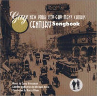 In Italy, the troubadours were called "joia," or "joyful," and they roamed about "little Italy," as Cole Porter called it, wearing colorful, often beribboned drag and long, curled hair, entertaining at weddings, court events, and other village gatherings. (An old Italian slang expression for gay men is "persone de joia," which stems directly from this.) The joia were known for their dancing as well as singing, and they can be seen in fifteenth century paintings, strumming away or dancing in circles, their long tresses flowing behind them. Gay Century Songbook is the NYCGMC's attempt to integrate the gay past with the chorus's own life and future. The piece, which comprises sixteen cuts on the CD, has words and libretto by Michael Korie with music by Larry Grossman. It was commissioned for the chorus's twentieth anniversary, and some if it deals with the group's own history with Carnegie Hall. It was the first openly gay group to use the hall, and now does at least one concert a year there. Going to hear this big chorus of over a hundred men at Carnegie Hall is by itself a moving experience. Here we are at the magnificent hall of Arturo Toscanini and Vladimir Horowitz and Pete Seeger and Judy Garland and just about everyone, where Tchaikovsky conducted his own work at the turn of the nineteenth century, on his tour of America . . . Pyotr Ilich Tchaikovsky, always looking for his "partner," the black swan from "Swan Lake," the prince to awaken him from his own long, sad sleep. Tortured (possibly murdered) for his homosexuality-if only Pyotr Ilich could be there to hear the New York City Gay Men's Chorus! Imagine his feelings . . . triumphant, humbled, tickled a Russian champagne pink, maybe even embarrassed (they can do some clinkers now and then, although the New York City Gay Men's Chorus has, happily, stayed away from the endless Jerry Herman medleys that keep some gay choruses afloat). Anyway, you don't have to stretch yourself to New Jersey to understand how I feel: here we are in a way up there, on that great stage, singing for ourselves and, really, to ourselves. That has been the magic of this chorus, and actually of all gay choruses. There are now dozens of them all over the country, but the first one was in New York and it was started by Gary Miller, who recently retired from it. Barry Oliver is now artistic director, and I can't say that we've become buddies; but people go off in different directions and the NYCGMC is now trying to find a direction to keep itself going in the Millennium, when being gay is either just another "consumer option" (if you believe PlanetOUT or GFN), or something you can be cheerily murdered for in Wyoming, Texas, or points thereabout. In Gay Century Songbook, though, the chorus, which is very much a part of this work (individual chorus members get up and introduce themselves, as in Michael Bennet's A Chorus Line, and then sing their stories) has tried to bring our usually buried past as a rich part of the gay experience to life. In most instances, it does not really happen. Michael Korie has done his homework (and probably read George Chauncey's wonderful book, Gay New York) but in trying to go after the lost past, Korie ends up often merely swacking you with cleverness. In one of the better songs, about the reticent Boston Marriages of the turn of the century, where a pair of usually, upper class women pretended just to be "good friends," he says, "We have a 'Boston Marriage' in Grammercy Park./ The accepted nomenclature/ for a twosome of our nature./ When a lady loves a lady/ and it's not a passing lark/ it's a dear little, mere little/ 'Boston Marriage' in Grammercy Park." The song goes on to say that, because there were so many Boston Marriages around it, "that's why they gate Grammercy Park." Yeah, sure. In "Something So Gay in A Barbershop Quartet," the chorus tries to open the inner joke among them that "straight men don't 'get' Lida Rose." (Well, maybe I don't get it either.) And in "That Way" they detail how the original Gay Nineties lady might know if her intended was "that way." "Does he wear an ascot?/ Is he fond of silk moire?/ Is a silver fox his mascot?/ He's 'That way.'" (Other tip-offs are a fondness for the poetry of Swinburne, ballet, musclemen and lifeguards: things ain't changed that much, right?) These songs are cute, pleased with themselves, and sound, I'm afraid, like they tinkled right out of Jerry Herman's much neglected "Mack and Mabel," except, unfortunately they were better there. So you have to wade through this to get to the good stuff, which does happen. This happens when you realize the past does have a real emotional tug on us. That we can identify with men who may be dead for almost a century, but whose struggle to survive in hard situations we can see. A whole virtual song cycle within the piece begins in Julius's, the hoary old bar in Greenwich Village that started out as a 1920s "sporting bar" (code: an all-male saloon) and speakeasy and today is openly gay. It goes into "Kieran McHugh Remains Abroad," about the "boldest queer in the army" who was lucky enough to die in World War I, rather than have to come home to constant humiliation and hiding, and then suddenly rounds off into "I Joined the Army," a true story from one of the Chorus members who sings "I joined the Army to make me straight/ and never touched another human being/ I thought the Army would let me hide." This is just heartbreakingly lovely, especially when the singer reveals that after becoming a major in the service, he became "a major gay rights advocate," and now his own spirit will merge with the flaming red of the poppy on Kieran McHugh's almost anonymous grave. The wonderful baritone Chris Pedro Trakis is the soloist in "Kieran McHugh Remains Abroad," and he luxuriates in this piece. Suddenly, the whole thing pops right out. Chris has sung pieces of mine in the past. He has a honeyed, rich voice and you want to lick him right off the stage. (