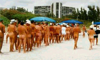 Boyte attributes these negative attacks to a combination of homophobia, political correctness, and the fear that the authorities might use the gay issue to close down the Beach. "I am the outsider with SFFB because, while I really appreciate the nude beach, it is not my primary civil rights focus. I am more involved with gay rights and gay visibility, and although the naturists claim to be inclusive of gays, they admit that gay visibility is bad marketing. So, we're told to acquiesce to the ignorance of those straight people who would pass judgment on us for our sexual orientation. The fear may be justified, because these ignorant people are the ones who attack gay rights and nude beaches and other civil rights. But when you know the history of gays in society and have had that history personally impact on you with discrimination and ridicule, then it becomes more difficult to keep a low profile for the sake of projecting a false image." "Homophobia is a widely misused word, inadequate for what we need to describe most hate mongers," Boyte continues. "However, in the case of SFFB it is literally valid. They do believe in equality for gays and are supportive of gay rights and are inclusive of gays, but apparently they are homophobic because they fear the impact of a gay identity to their nude beach. The 'political correctness' is just the tool of this homophobia, by insisting that we need not classify people by sexual orientation. No, we need not discriminate against anyone for any reason, but it is a false assertion that all people are the same. We are not. We each have our individual history, and our group history that differentiates us from others." Boyte agrees with the theory that men are more naturally promiscuous than women, which would make it easier for a man to find a same-sex partner than an opposite-sex partner. Does this mean gay or bisexual men are more likely than heterosexuals to have sex on the Beach? "I'm a bisexual man who's been gay for the past two years by default. Since my divorce I've been intimate with more than a half dozen men, but not one woman. I'm still very attracted to women, but you have to pursue them and make commitments, whereas you can get a guy in your bed without really knowing his name or being able to speak his language. Also, men seem to be more daring and less inhibited about having sex in public. But in my stays at Haulover, I've seen as much heterosexual playing around as homosexual. Straight men with a receptive girlfriend can be just as bold as two men together."