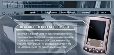 Queerpalm is the first site of its kind, providing quick access through portable devices. It provides a personal hand-held entry to gay and lesbian happenings worldwide. "Herein," say its creators, "one will find links to other gay sites, up-to-date news developments and the latest in fun-filled tips for life-style enhancement." Queerpalm has been specifically designed to be accessible through any portable device with access to the Internet including web enabled portable phones, Personal Digital Assistants (PDA) and handheld PC's.